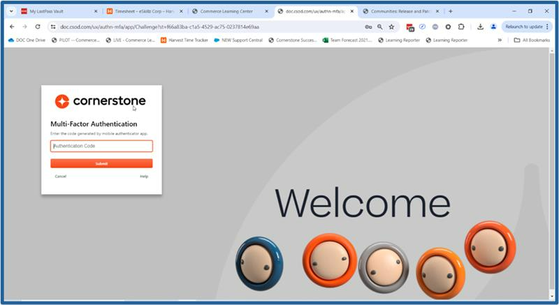 This means that once MFA is enabled for Administrators who work for the bureaus above and should they attempt to sign into the CLC using the manual login option (DOC email address and password ), they will be redirected to and presented with the Cornerstone/CLC MFA screen as shown in the following image.